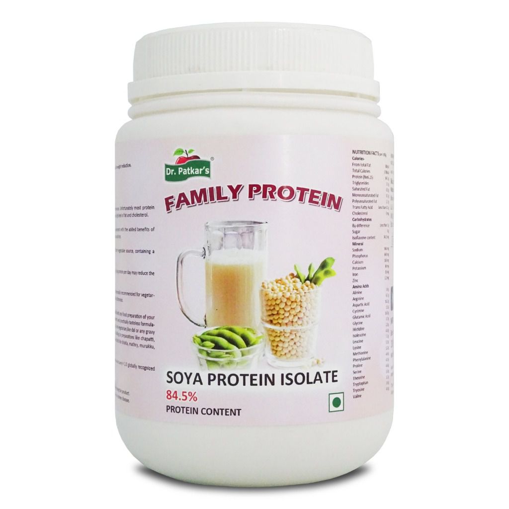 Dr. Patkars Family Protein isolate is a highly refined or purified form of soya protein with protein content of at least 84.5% on a moisture-free basis. It is made from defatted soya flour which has had most of the non-protein components, fats and carbohydrates removed. Because of this, it has a neutral flavor and will cause less flatulence than soya flours.